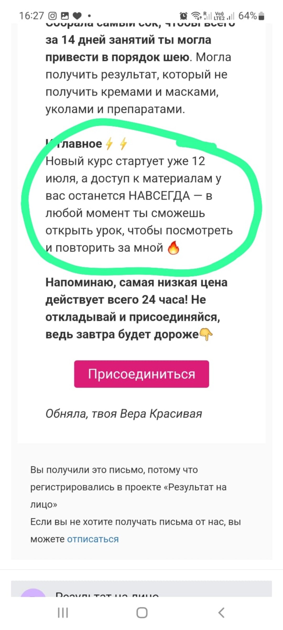 За день до старта отправим также уведомление на Вашу электронную почту.❗Также проверяйте на почте ВСЕ папки: спам, рассылки, промоакции, либо в почте воспользуйтесь поиском по письмам, введя - Результат на лицо❗
