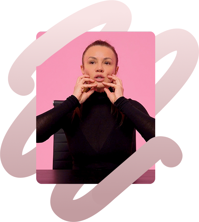 - Особенное внимание тем зонам, которые больше всего беспокоят: носогубная складка, жевательные мышцы, мышцы в средней зоне и до глаз. Работаем с нижней частью лица от морщин на губах, от опущенных уголков рта.
